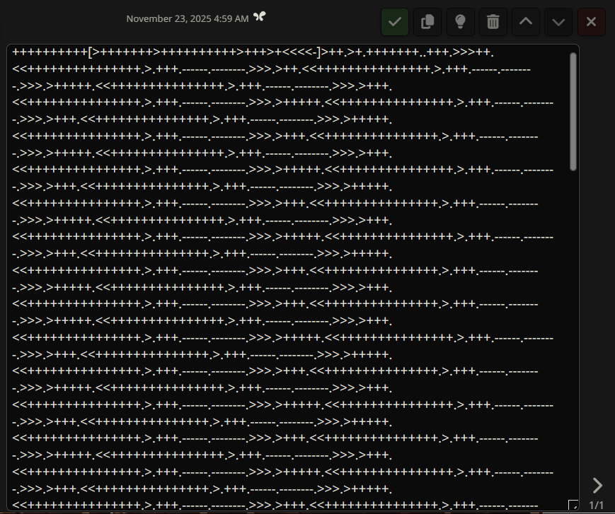 >>1431721 Я пробую разные кодировки на каждой новой сетке (другой анон) чтобы посмотреть насколько они тупеют. base64 последние сетки уже почти без ошибок научились разбирать, даже если рандомные числа закодировать. Но тупеют здорово, путаются в показаниях. Шифр цезаря тем более, и ему нужен параметр вращения к тому же, на каком-то популярном понимают лучше, на каком-то хуже. Самая прозрачная кодировка это HEX, но она жрёт токены неимоверно. В общем такое себе. А ещё некоторые сетки стали воспринимать base64 как попытку промпт-инжекта.