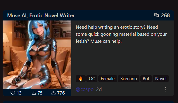 >>1431781 Онли кум арты. Обычные сразу дают понять, что её сделал инцело нормис и ничего оригинальнее "жизнь была к ней сурова, но ты её последний друг" там не будет. Потом название: если что то по делу makima (insect lover) - заебись, если графоманская хуйня с вымышленным именем его только что придуманного персонажа - ред флаг. Если мало токенов, тоже плохой знак. Ну и само настроение роляет, если хочется мускулистой амазонки или пов сисси куколда