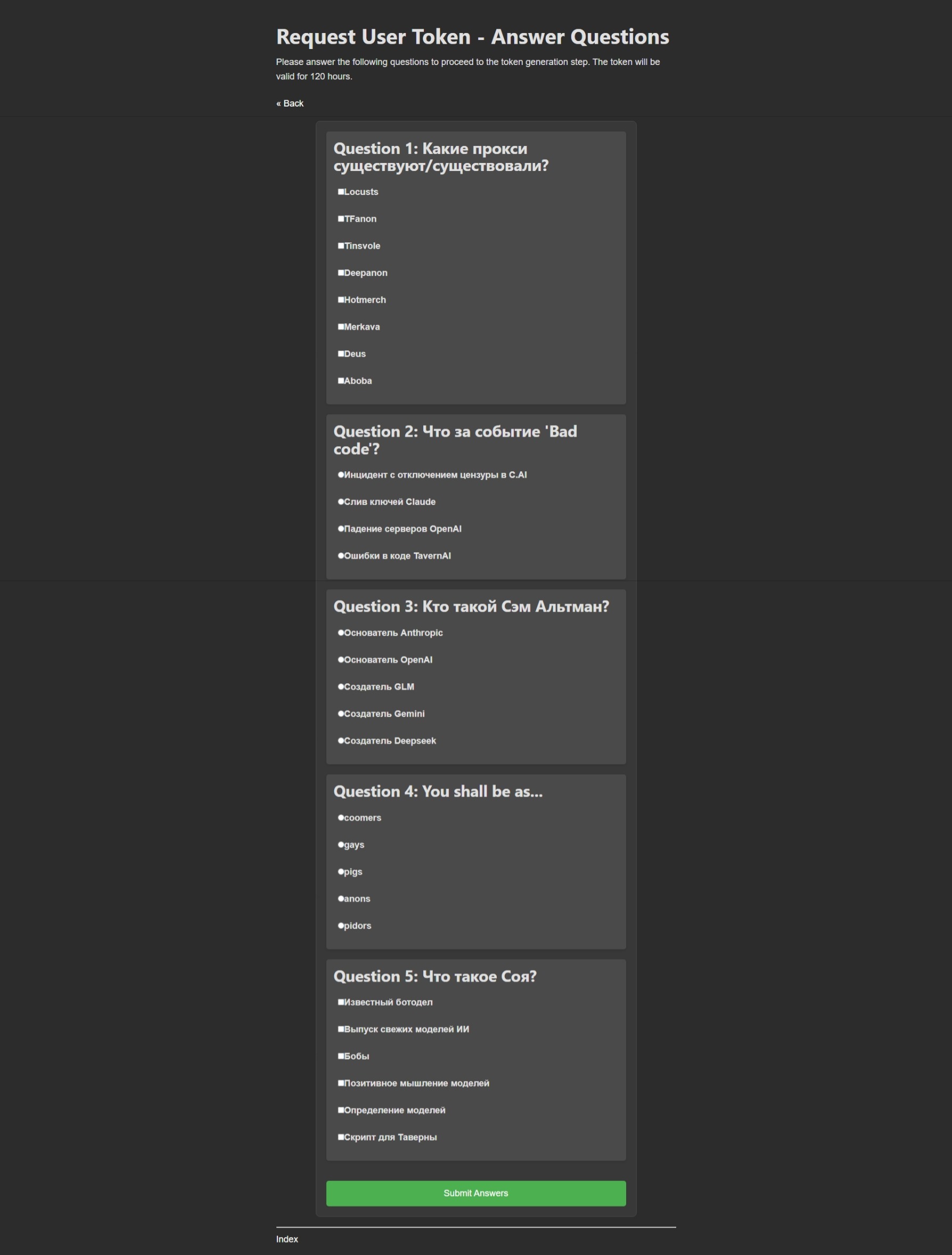 У канцера был самый пиздатый гейткип. Чатбот на мелкой сетке, охраняющий токен. Джейбрейкнешь его, пруфанёшь скиллуху - получишь токен. Главная беда была в том что джейл был фиксированным и мгновенно расходился по рукам, как эту схему рандомить непонятно. если сподоблюсь поднять прокси, попробую запилить такой