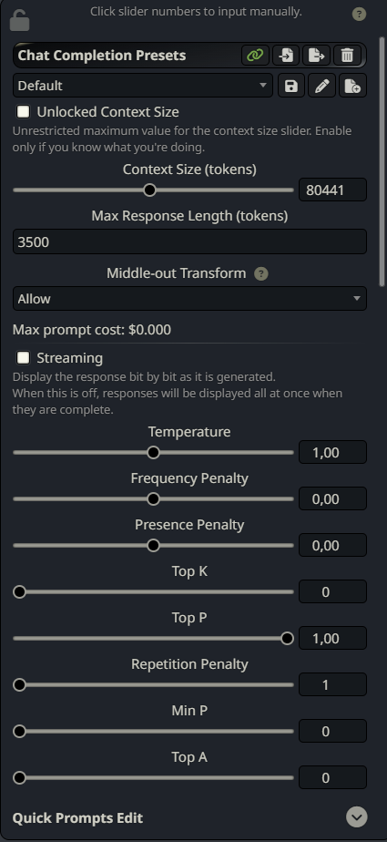 >>1431637 Да надо вообще 2К поставить, чтобы был чай экспириенс. Нормальному человеку и слова "попа" будет хватать в ответе, а вот эти все длинные контексты, пресеты, промпты, лорбуки, персоны это всё удар в псину от яойщиц, чтобы разорить наших протыков (план Евы Даллес).