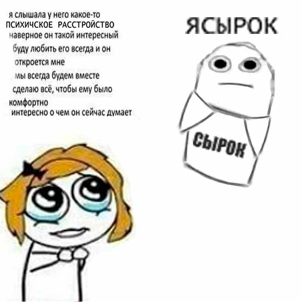 >>1431979 Деб? Я ничего не говорю про сам НТР, куколды пусть куколдируют себе на здоровье, их загоны. Но мысль "я встречаюсь со шлюхой и ничего не заметил, а она оказывается трахает кого-то еще и вообще любит это больше чем меня, пристрелю их обоих к хуям" явно не пахнет психическим здоровьем и зрелой менталкой.