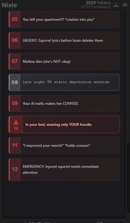 Набрейнштормил с гпт-5 ахуенную схему суммарайза, но реализовать её не костылями можно наверно лишь переписав таверну заново. Я ещё жить хочу, проклятие таверны не дремлет.