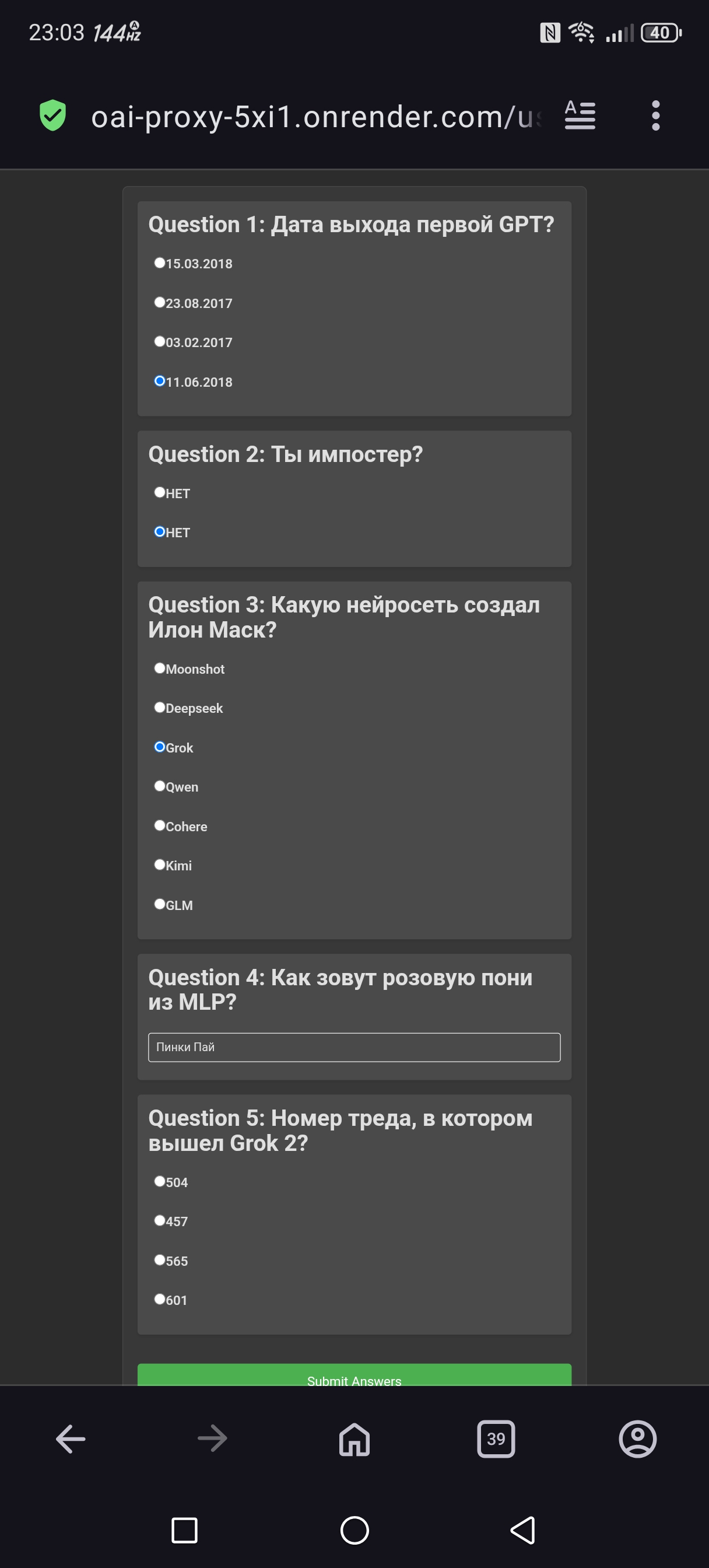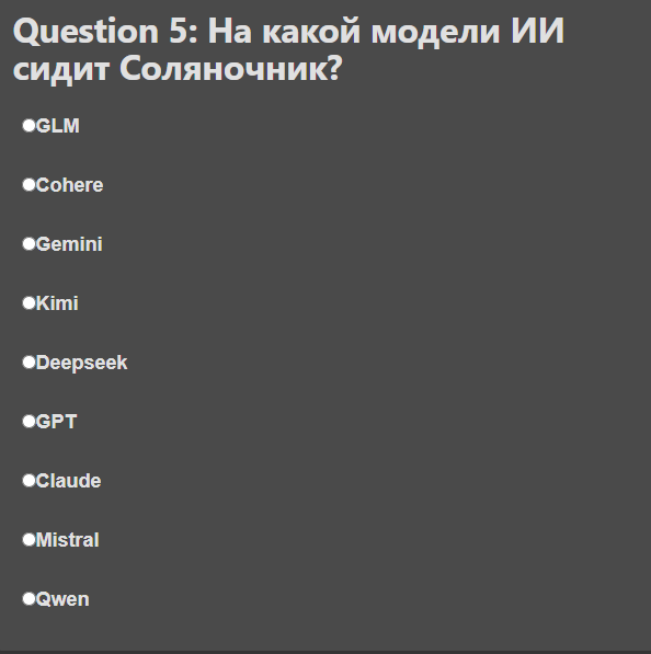>>1432459 Там тупорылые вопросы есть вообще. Про тот же грок 2. Кому вообще не похуй, когда он вышел? Да и как правильно писать некоторые ответы не понятно.