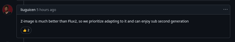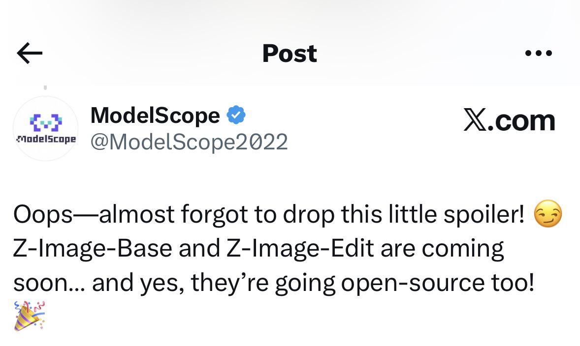 >>1433601 >зачем откладывать выход базовой модели? мне кажется они выкатили турбо версию тупо чтобы сбить Flux 2 со своих лавров и не дать времени ему набрать хайп (хотя его и так мало кто запустит). Может они еще дотренируют чутка свою базовую модель. Читал что они планируют иметь несколько базовых моделей - сейчас тренируется та, которая с закосом на реалистик фото. Потом будет чисто на аниме а потом хер знает.
