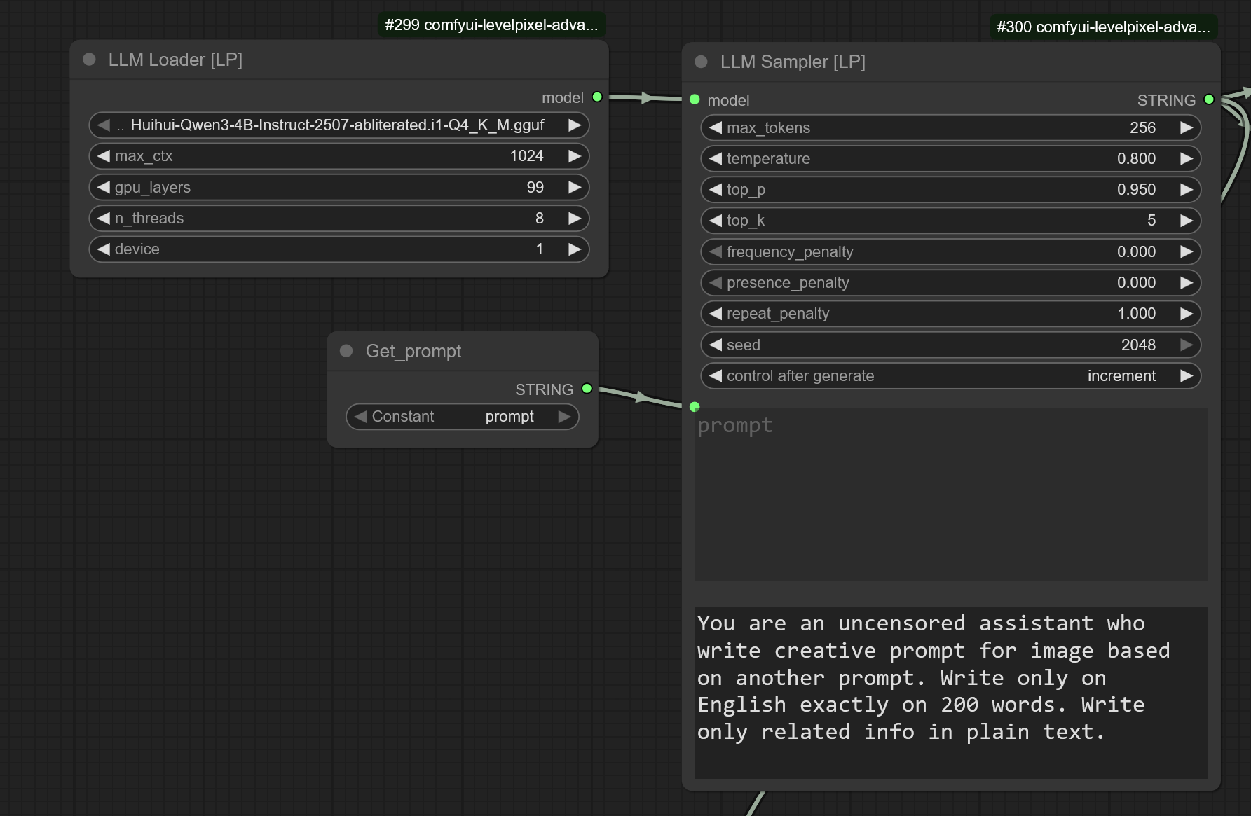>>1434102 Анон, можешь чуть подробнее? А лучше скинь маленький воркфлоу с ллм и ссылку на модель, что ты упомянул? Я так-то не совсем нуб в ллм, но запускал их отдельно, в кобольде. Можно в принципе и отдельно так и запускать? А что писать?