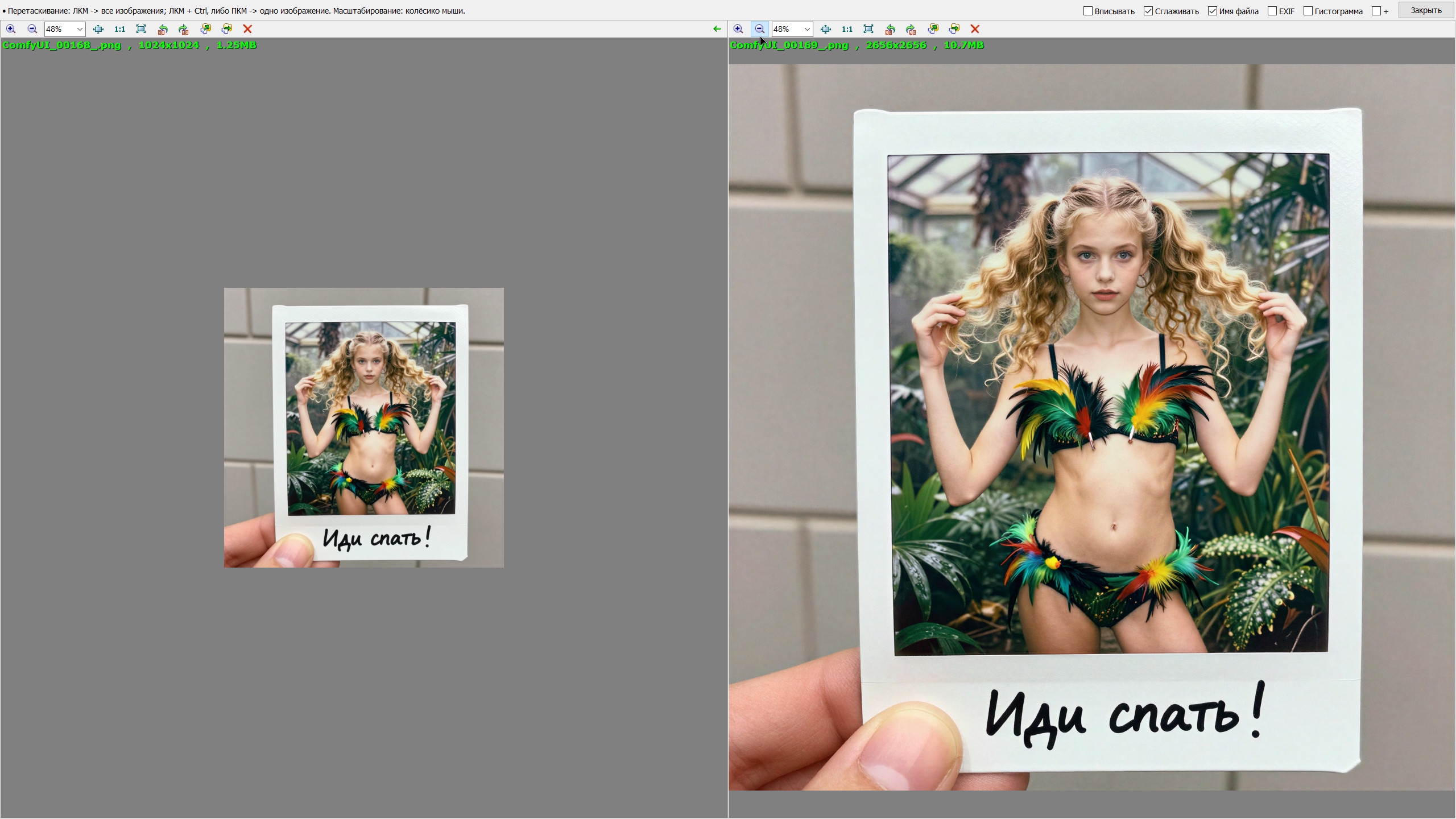 эйприл на фотке кста. Ну прикольно, но некоторые промты вообще не понимает, просишь свифт в одежде чун ли, он либо то, либо то генерит, пробовал и косплей писать и т.д., это фиксится описанием костюма просто, но банана все промты понимает, я жопу с пальцем сравнил, да