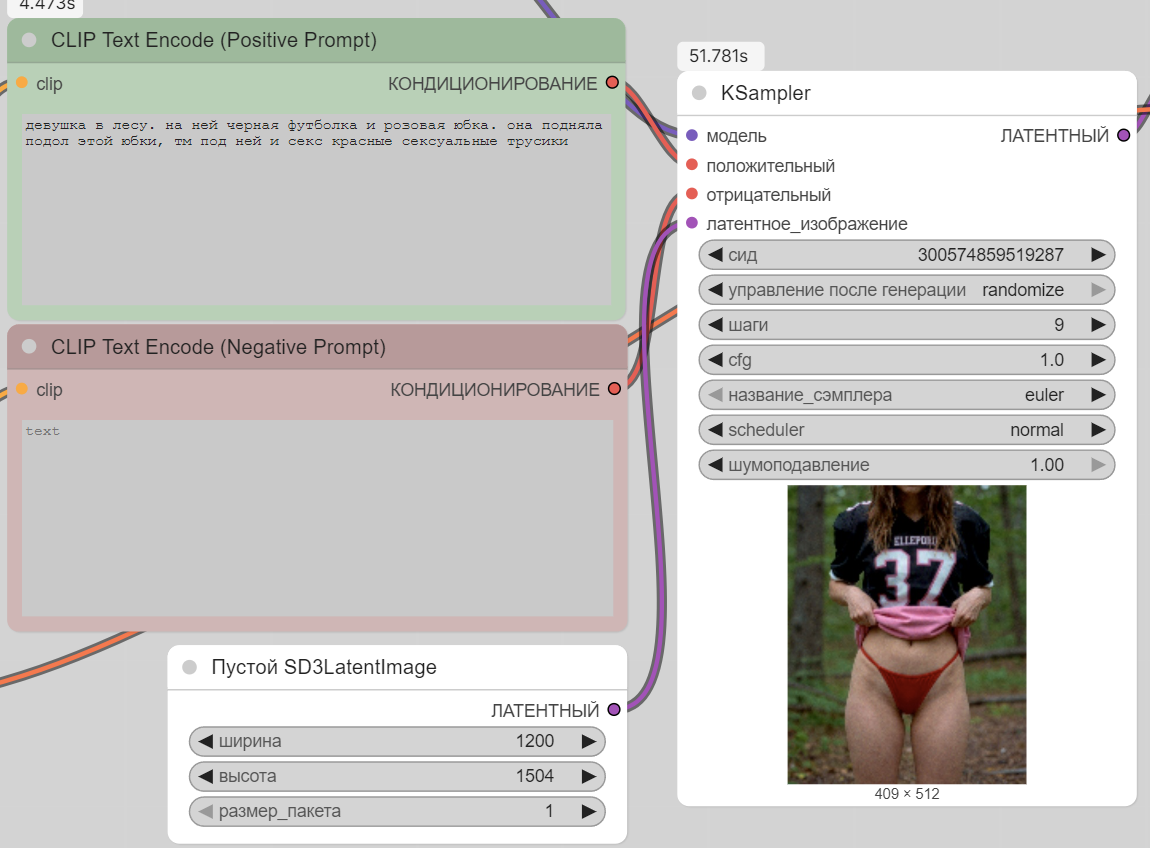 >>1435039 Как поменять прмомпт чтобы было не как на пике, а понятно как хотим: On a path in the woods a girl of 25 years old dressed in a skirt and black T-shirt shows red panties on herself