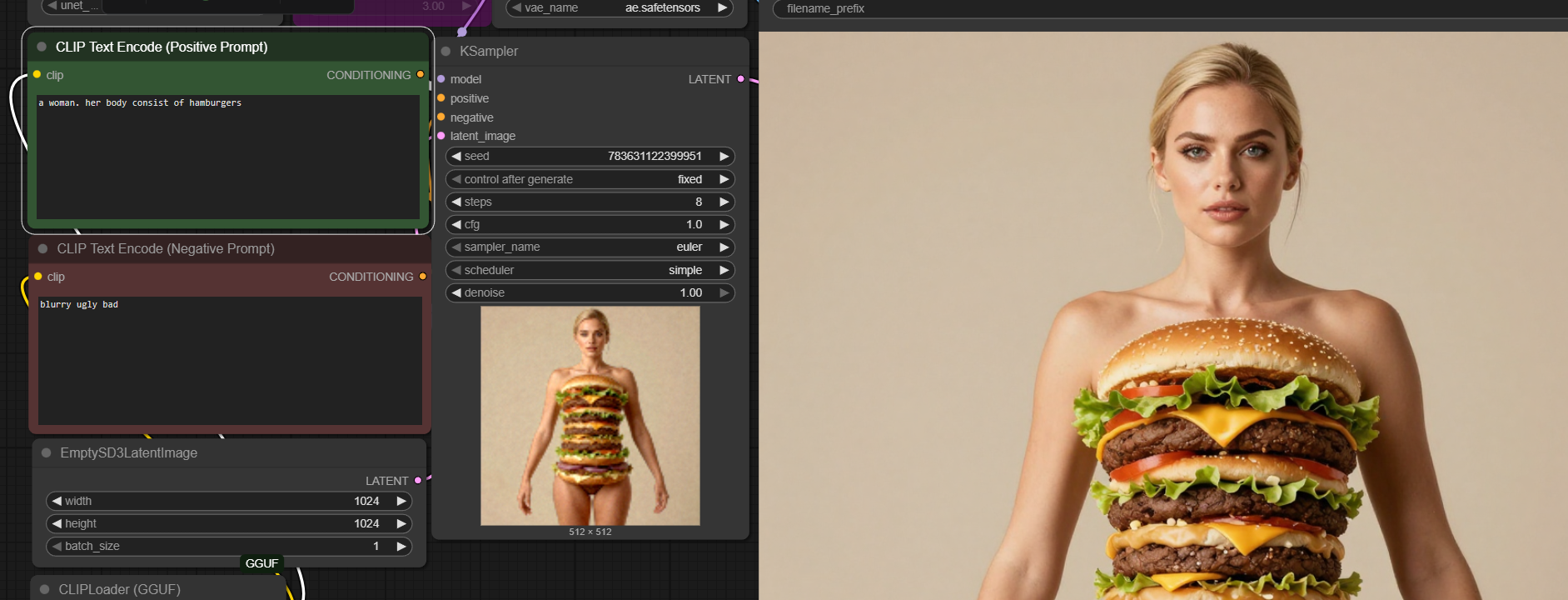 Какая же гадость в сравнении c моей любимой sd3.5. Цвета нет, композиция проебана. Мешанина вместо цельной картинки. Для редактуры в будущем сойдет, но не больше.