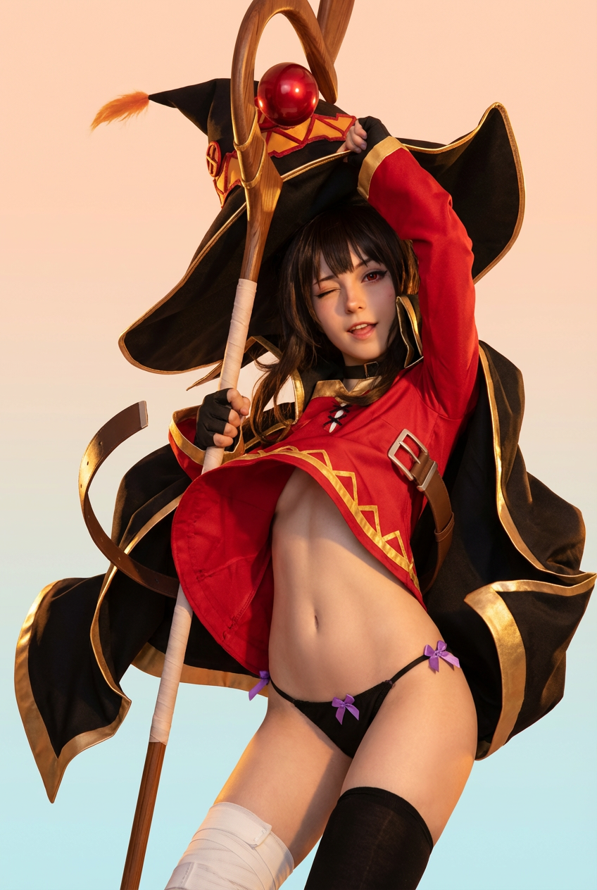 >>1436716 У меня только такой есть let a high budget cosplay artist faithfully reenact this scene with a similar expression and pose. ensure that the cosplay artist has realistic human proportions and a similar facial structure to the character, and attune the light effects and shading to be photorealistic