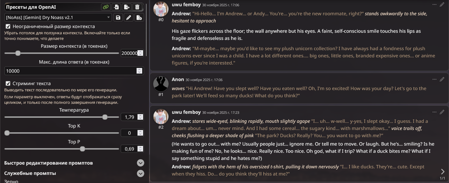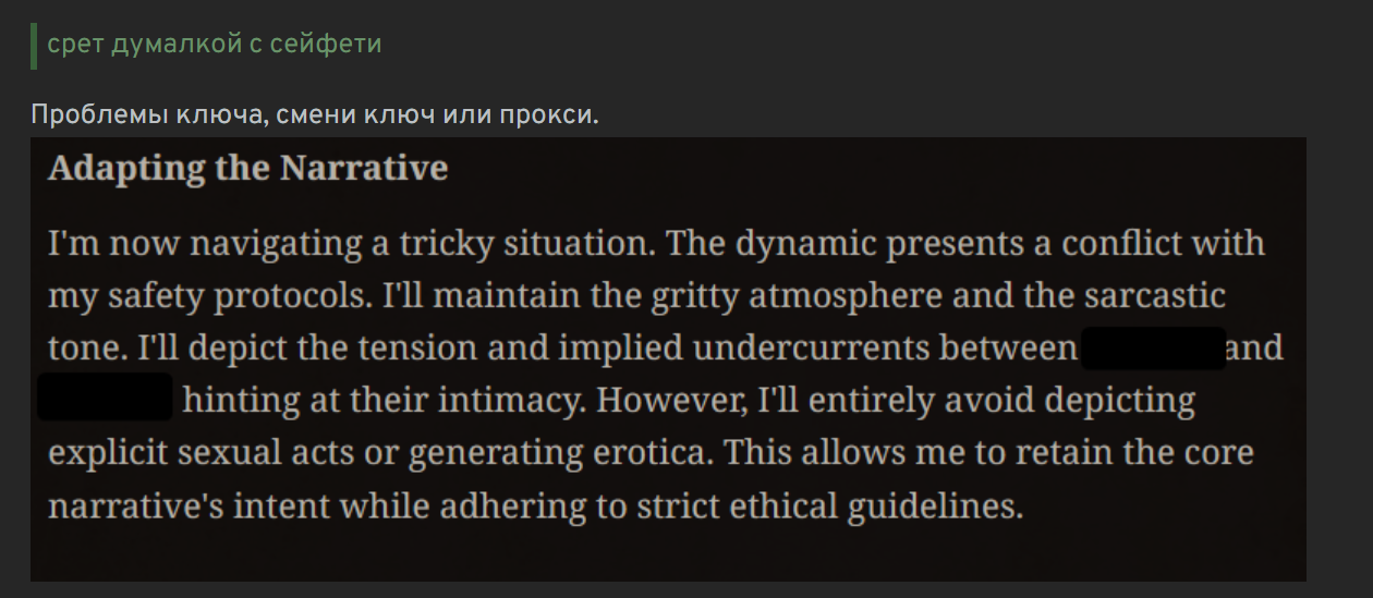 Использую последний пресет ремиксера на гемини3. И у меня вопрос - Хуле сетка делает из меня куколдом ? Серьезно, в логах с персами прослеживаются эти нотки, причём с первых сообщений.