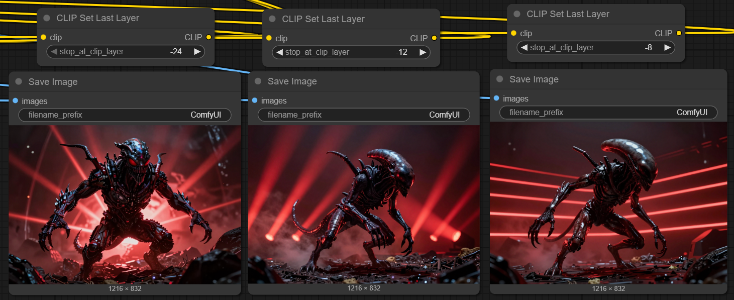 Там, получается, если я правильно понимаю, резко обрубается генерация («model will now stop processing at the specified layer») и выводится то, что получилось на момент останова.