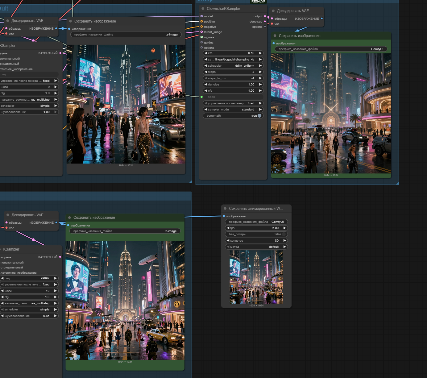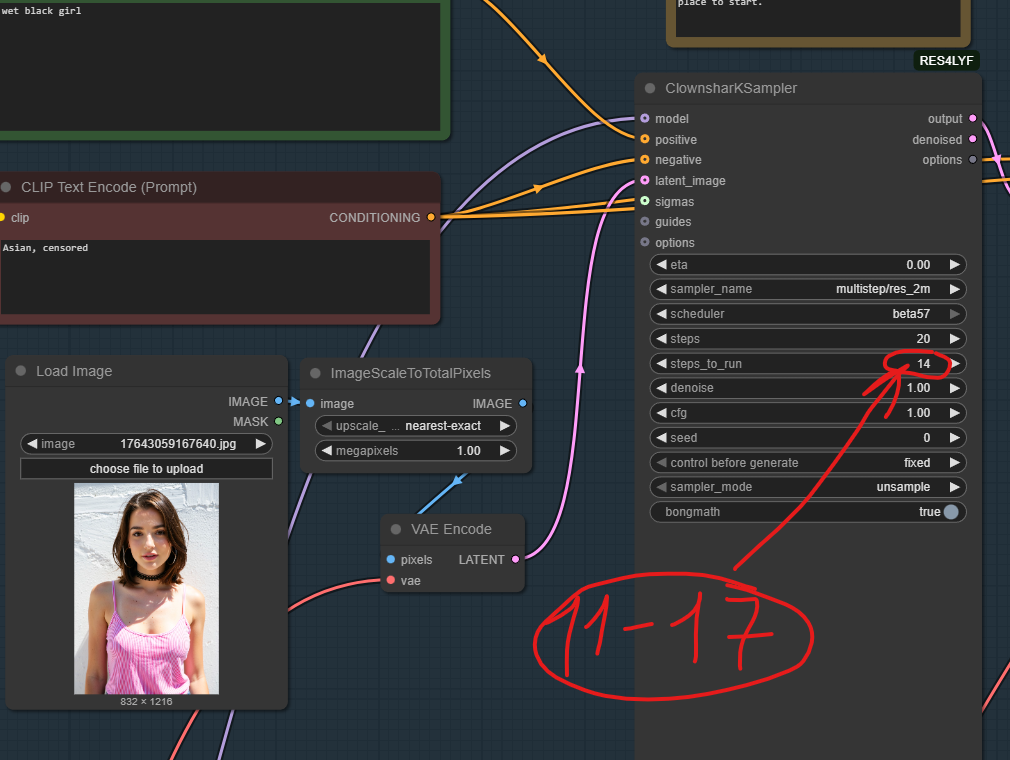 >>1446882 Склепал воркфлоу для легких модов для Z Image Turbo (в пик1). Без ресемплинга, работает быстро, чуть дольше обычной генерации. Крутить нужно параметры в ClownGuide. У этой ноды есть много режимов работы guide_mode. Что-то показывается в примерах, но многое не понятно. Почитать было подробную инструкцию. Семплер 3s даст гораздо лучшее качество, но дольше.