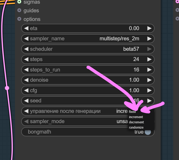 >>1445605>>1445602 > у ksampler нет такого > две строчки посередине increment - повышают значение сид на 1 decrement - повышают значение на -1 по идее между рандомайзом и инк/декр не должно быть сильной разницы в результате, на деле как придётся