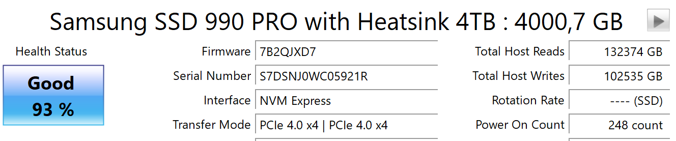 >>1446871 Чего ты там ссышь. Нормальный ССД должен минимум 500-700 ТБ жить, тебе с 7 ещё далеко. У меня 100 гигов подкачки на ССД и мне вообще похуй, спустя 2 года пишет 5% жизни ушло.