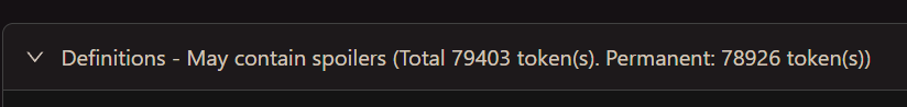 >>1445807 >Насколько обязательно делать лорбук если задумано много персонажей? Обязательно. >Просто как я понял лорбук не будет задействован когда не упоминается именно то же слово на том же языке, да? Да. Если планируешь рпшить на русике, то и лорбук должен быть на нем. Еще в русиковых лорбуках надо учитывать падежи - если у тебя локация "Утроба Гномов", то кейворды будут "Утроб" + "Гномов"