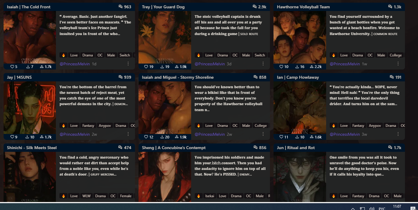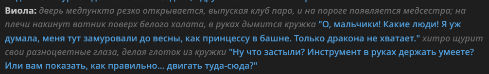 >>1444670 Да, и за это обожаю её. Можно двигать реально крутые сюжеты, а не вставил-высунул-вставил кончил. Особенно когда бот подьебыаает за то, что сделал 100-200 соо назад