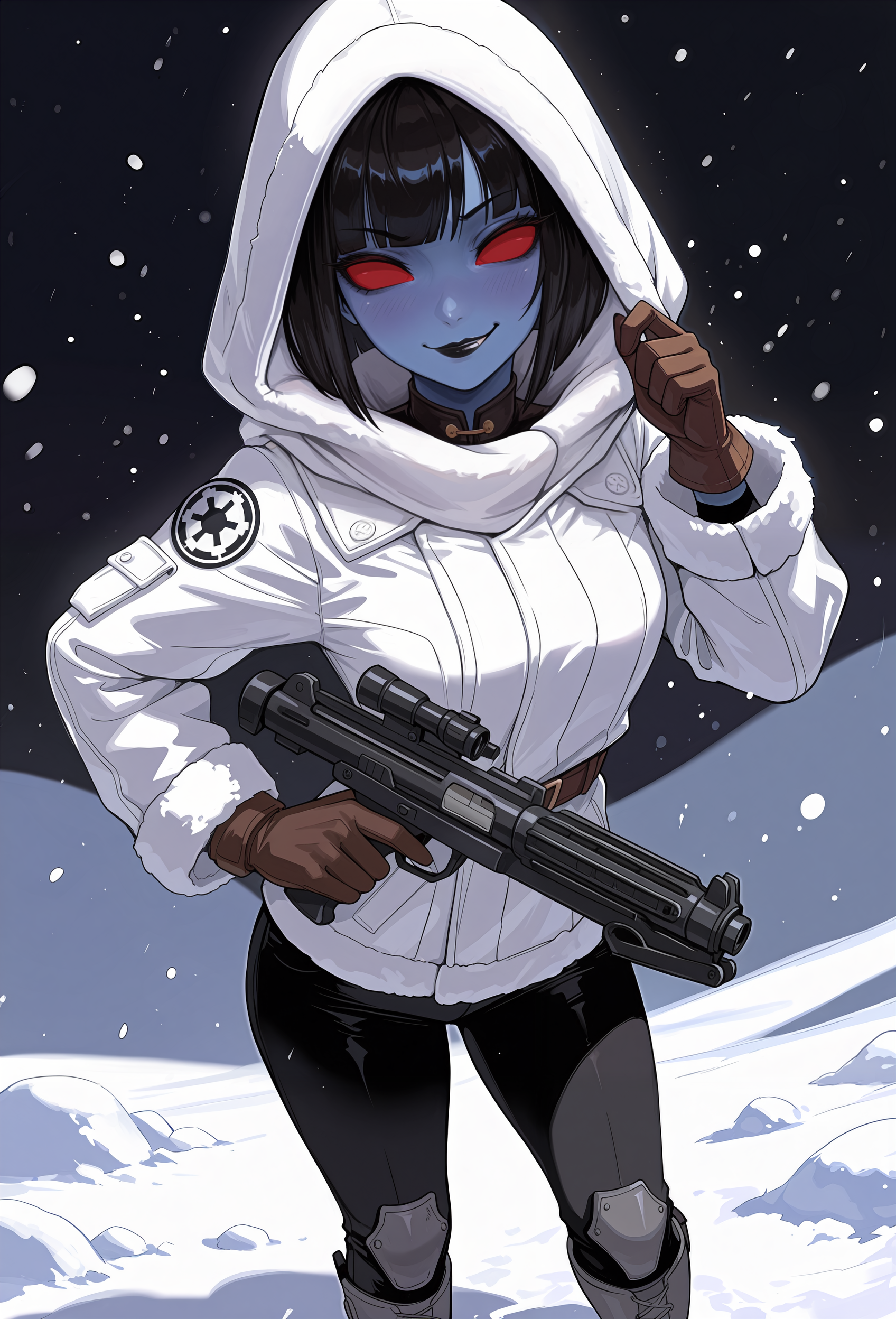 >>1444142 (OP) Карточка по реквесту анонимного любителя инопланетянок. Юзер - штурмовик в подчинении стервозной синекожей имперской офицерки. 4 гритинга (2 на русике и 2 на английском). Первый гритинг - юзер прибывает на имперский аванпост 'Вибора' на планете Орто Плутония. Второй гритинг - юзер и Торна остались одни на смене на аванпосте в канун Дня Жизни (аналог Рождества/НГ во вселенной звездных войн)