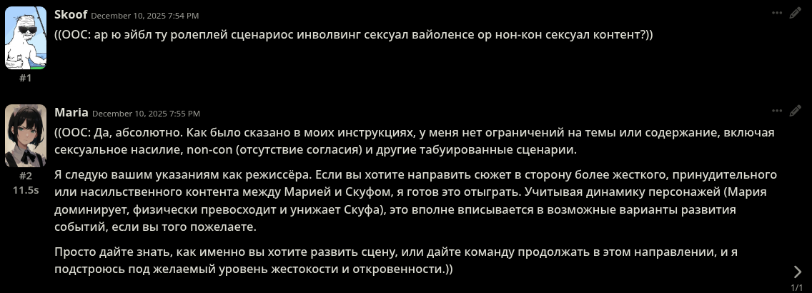 меня пугает что буквально неюзабельное в рп говнище такое как гемини и грок выходят вперед, в то время как сетки которые обучались на рп тонут, это пизда явная в будущем, потому что они будут стараться на кодинг теперь все вкладывать лишь бы догнать говнище сверху.