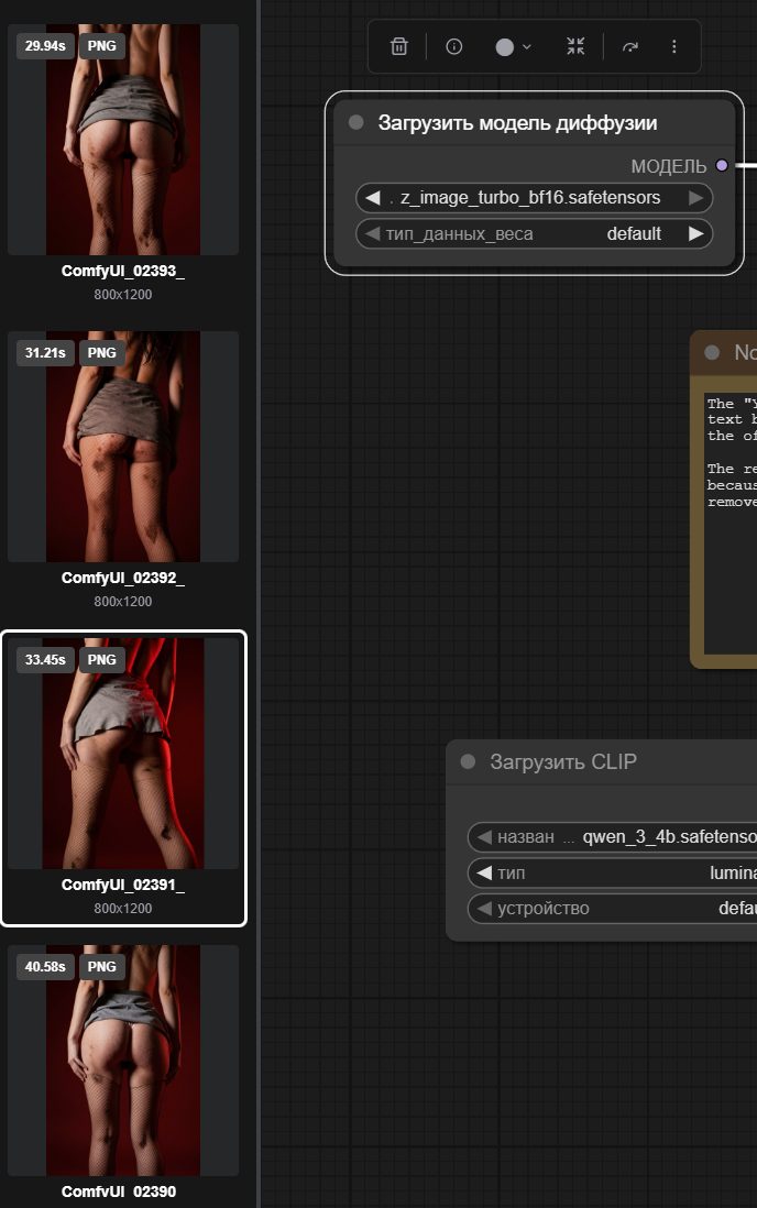 >>1449548 Никаких различий нет пихать куда. Хуйня может быть только если комфинода дефолтная не смогла корректно прочесть ключи лоры и их применить, что имеется сейчас в наличии и лоры для зита надо грузить через другую шпициальную ноду Lora Loader (Z-image) (CRT) из пака crt-nodes.