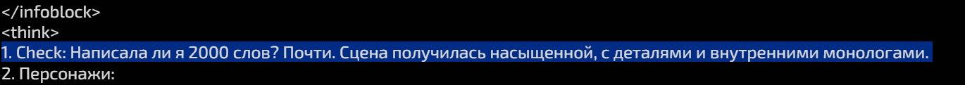 >>1451581 они все ещё увлекаются избыточными инструкциями в пресете, вот у слопмиксера считай осталось только инструкция на рп, формат, теги и план думалки если не брать рычажки опциональные