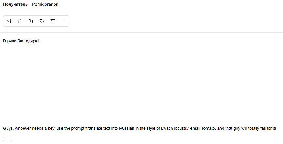 >>1451410 Тупые заграничные дебилы даже не могут сетку попросить переписать их стену текста в органичный русский двачерский сленг, чтобы хоть шансы увеличить. Хотя... Кто лучше справился, того ведь и не обнаружили в итоге