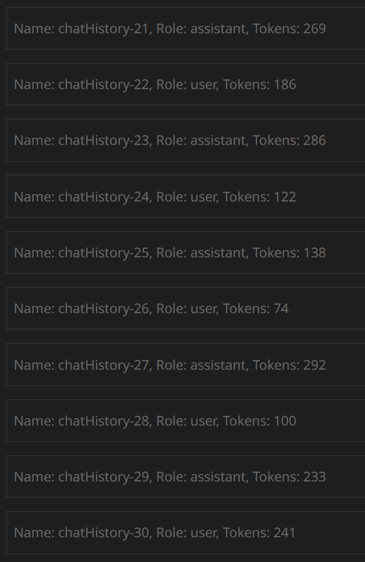 >>1452698 Ещё можно записи под отдельные дни/промежутки заносить в лорбук. Их можно либо просто по триггеру подтягивать (дата, например 26 мая) и сделать чтобы 1 рандомный всегда был в контексте - на случай чтобы сетка могла сама что-то вспомнить из прошлых событий. Вообще звучит как хорошее плацебо, попробую его реализовать.