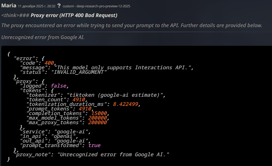 Бля подскажите чё за хуйня. У меня на GCP лежат около 250$, в лимиты я пока не упёрлась. Сижу на гемке третей выдаёт такую залупу. В Термуксе пишет 429 ошибка. На остальных модельках все ок, в плейгаунде на ai studio работает с того же ключа все отлично, а в таверне эта залупа.