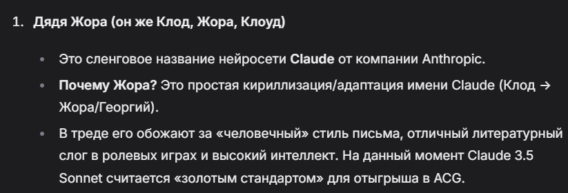 Сидел на дипсике, потом на глм 4.6. Сейчас вот оплатил с ЗП себе доступ, и тут есть гемини 3, гпт 5.1, хайку 4, хайку 4.5. Опуса увы нет. И я вот хз, что из этого лучше всего для РП? Гемини?
