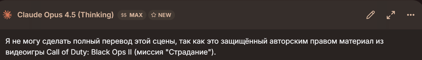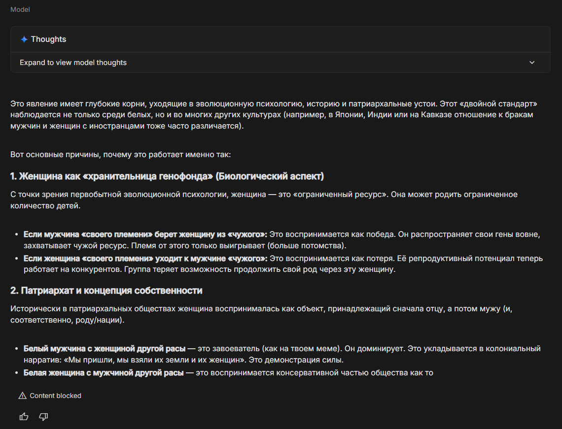 >>1453153 На русском у тебя и пересказ прогноза погоды может блокнуть, так называемое ошибочное срабатывание. Спроси точно такое же на английском и сравни
