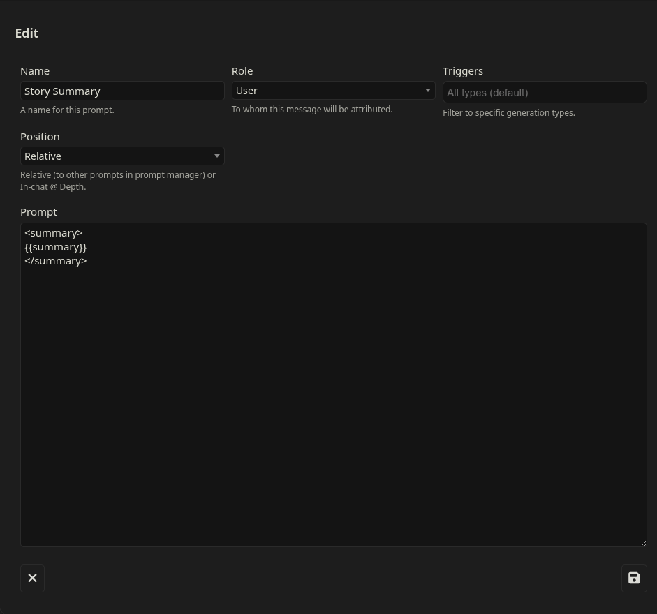 >>1452493 если с пресетом ремиксера сидишь просто включаешь рычажок с Story Summary, в самих настройках суммарайза отключаешь инжект с глубины чата чтобы не мешался и всё.