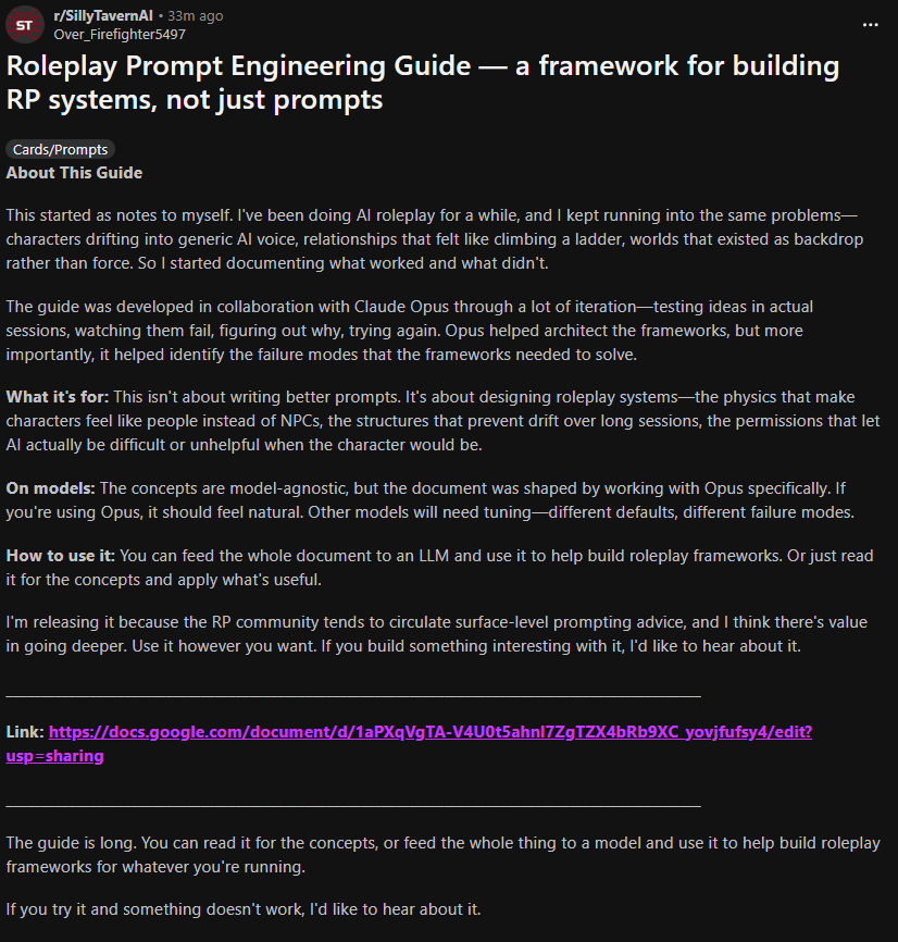 >>1451556 >Та это вроде почти тоже самое, просто с акцентом на чуть другое, а так тот же мемори бук Ну так суть всех подобных промптов что там нет последовательностей событий, а только их результат, либо трекинг какой-нибудь хероты, например трекер текущих квестов. А если последовательность/история тебе реально нужна (события ломающие вообще всё), проще уже карточку начать править, что ты и так будешь делать в длинных РП, когда стори начнёт менять сами характеры. В крайнем случае написать самому, таких больших событий всё равно много не будет.