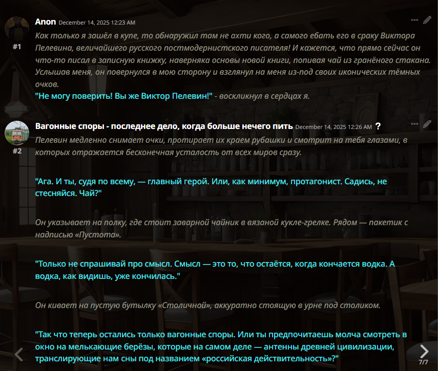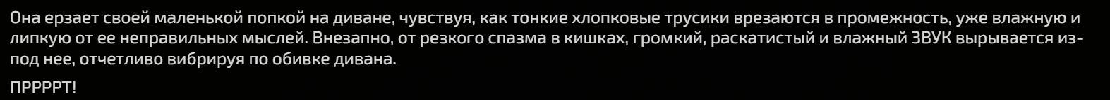 И кстати когда массовый псиоп произошёл и у нас тредовички стали РПшить что диалог выделяется через "кавычки", действия плейн текстом, а мюсли через астериск?