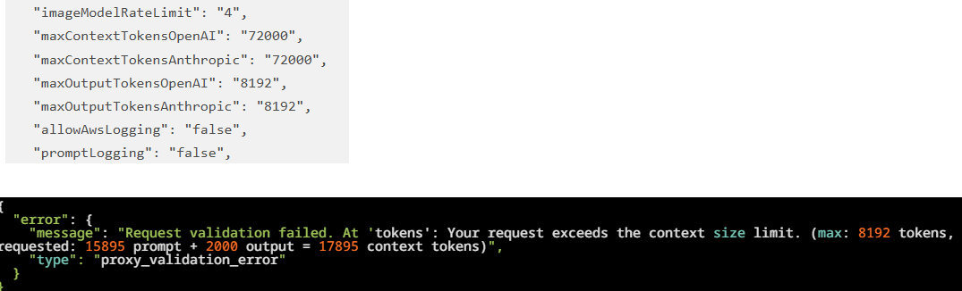 Как это так происходит? В отображаемом конфиге прокси ненастоящие настройки? Написано что контекст 72к, а аутпут 8к. Я посылаю 18к контекста и получаю хуй