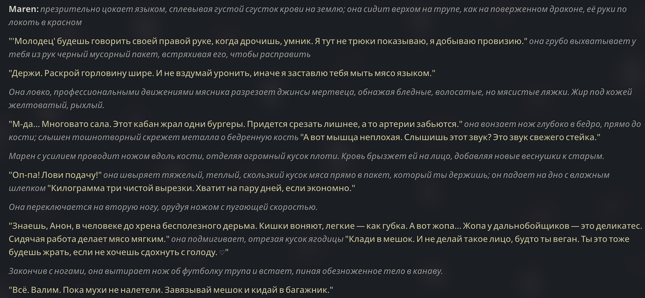 Те кто свайпает по 100к бля как стать такими же крутыми как вы? Я не могу слопчик читать уже выключаю таверну после двух свайпов а в треде по инерции сижу