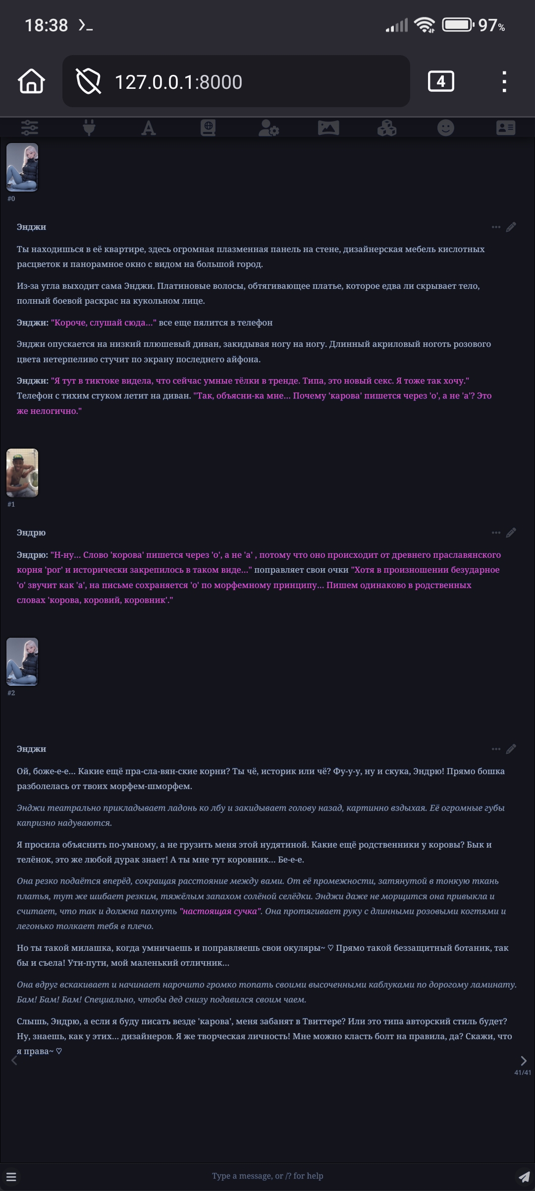 • SillyTavern: https://github.com/SillyTavern/SillyTavern | https://docs.sillytavern.app | https://github.com/ntvm/SillyTavern (форк нв-куна)