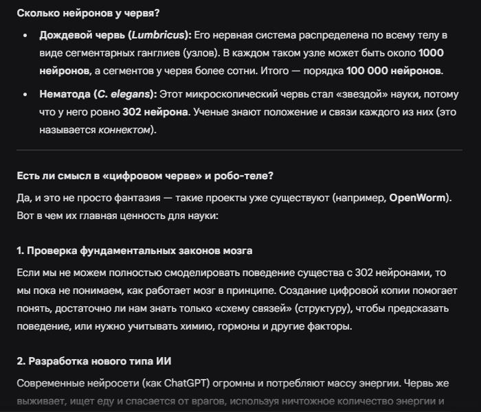>>1467038 >но ведь мы же ещё не знаем даже и на половину как работает наш мозг. Это на текущий момент. Если бы мы пошли другим путем и не смогли найти вариант создания AGI другим способом, то мы как минимум когда-нибудь смогли бы скопировать наш мозг. >и явно AGI будет на других принципах строиться Поэтому я и говорю что теоретически. Я не говорю что это случится, я говорю что это как минимум реализуемо в нашем мире.