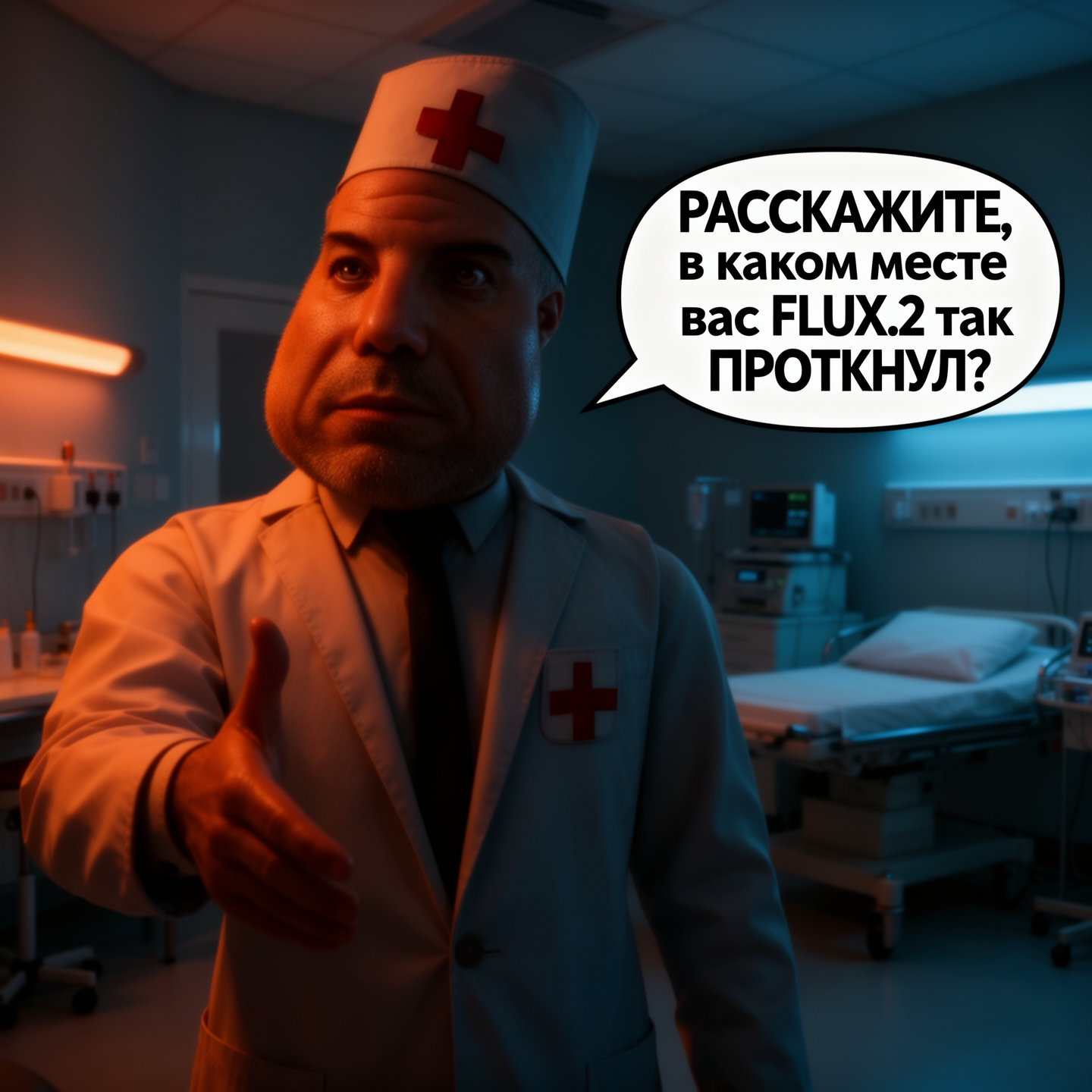 Ещё FLUX.2 с задатками Edit-манипуляций с элементами изображений, работой с reference images и различными стилями. Жирная (если меньше 128 Гбайт RAM, лучше не трогать, сбережёшь SSD и нервы), медленная (вышедшая вчера LoRA на 8 шагов ситуацию не исправляет, так как теряет детали композиции), требует определённого подхода к составлению JSON-promptов, если хочется чего-то с обилием деталей на генерации. Публика без железа её не жалует. При определённом подходе позволяет делать пикрилы.