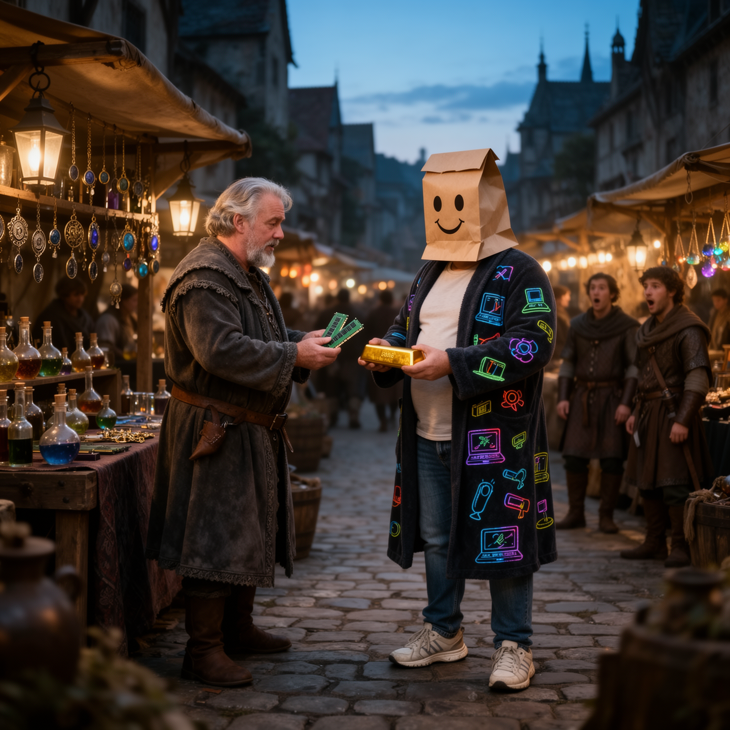 Я слежу за генерацией на этапе preview. Ждать 3-5-7 минут ради запоротой генерации непозволительно (после скорострела Z-Image). Когда видишь, что не получается, лучше сразу остановить и сэкономить время. FLUX.2 начинал рисовать его как нормальный монитор, а потом, на последующих шагах стал тянуть, чтобы вместить референс с интрефейсом торговли. Он хотел его ещё больше вытянуть, но решил нарисовать третий пустой CRT монитор рядом.