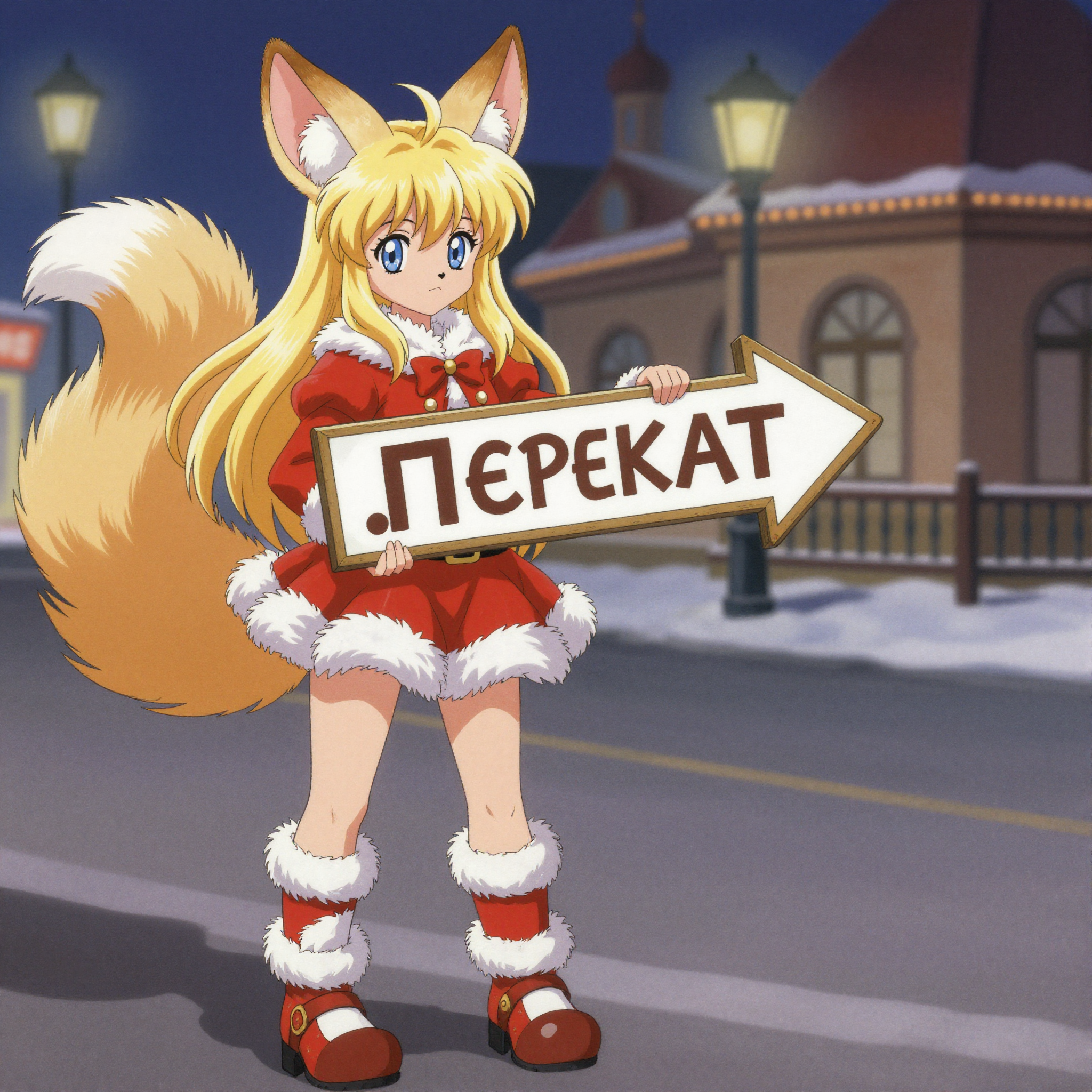 А потом затестил на Z-Image с его default qwen_3_4b.safetensors Сдаюсь. Даже упростив сцену до prompt выше, всё равно не получилось вывести строку без ошибок. И на латинице тоже (на ней, думал, будет без ошибок). Иероглифы лучше получаются. А остальной текст это «Вонни и Птчк». Изменение настроек sampler/scheduler (default: res_multistep/simple) на (euler, heun, res_3s/beta, linear_quadratic, beta57) ожидаемых результатов не дали.