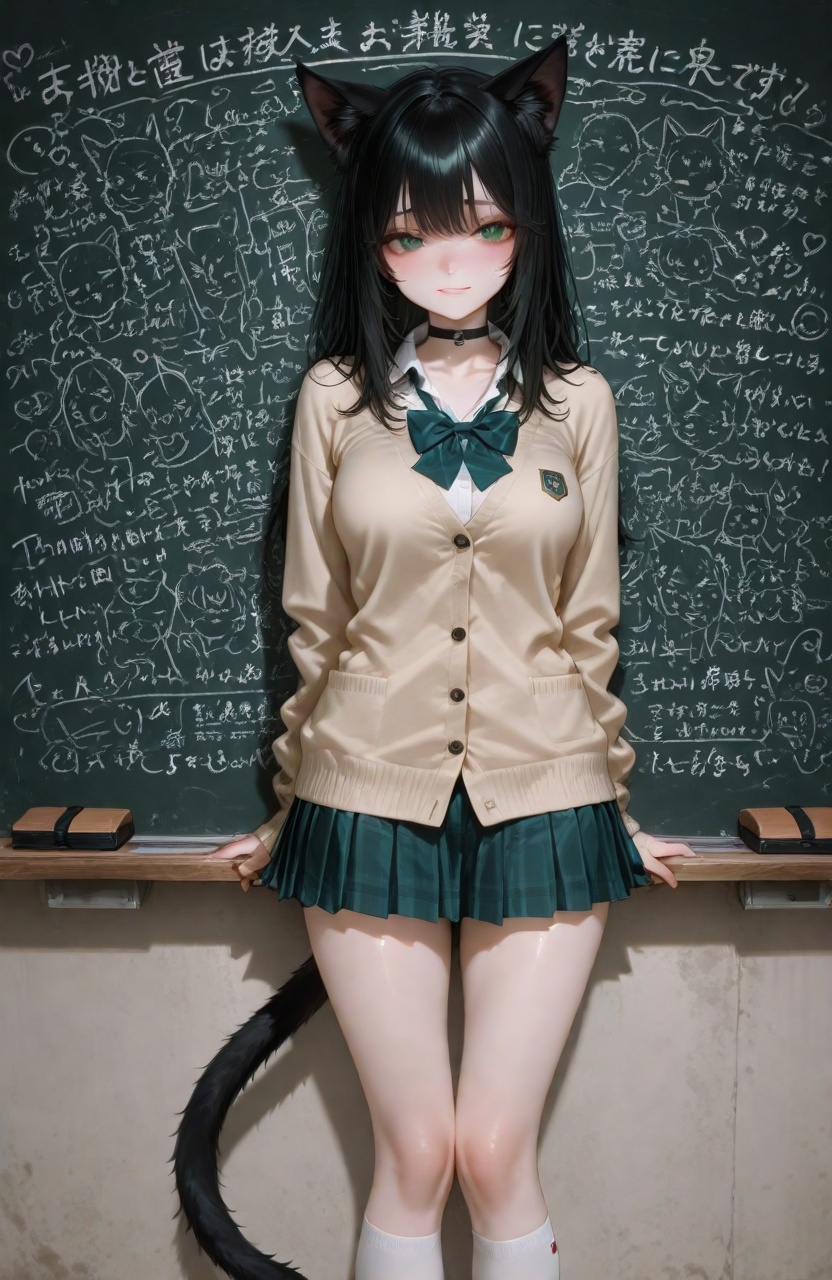 <appearance> Sex: Самка Age: 18 лет. Race: Некомими Height: (in cm) 165 Body: Среднего роста. Средняя грудь, узкая талия, широкие бедра, болшие черные пушистые уши, густой пушистый длинный хвост Skin: светлая Eyes: зеленые Hair: Длинные, прямые, черные