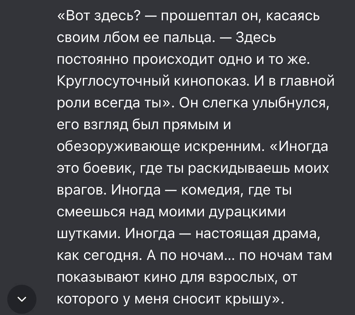 Но вот в версии 5.2, вместо таких банальных исправлений, нам скормили полное разочарование. Во первых — ужасный фильтр на nsfw. Ни один джейлбрейк его не пробивает, хотя те же пресеты отлично вставали на 5.1. Да, она хороша в sfw, но этого мало для постоянных вложений и экспериментов. По характеру действительно напоминает 4o, как нам и обещали, но я в целом не фанатка старых GPT.