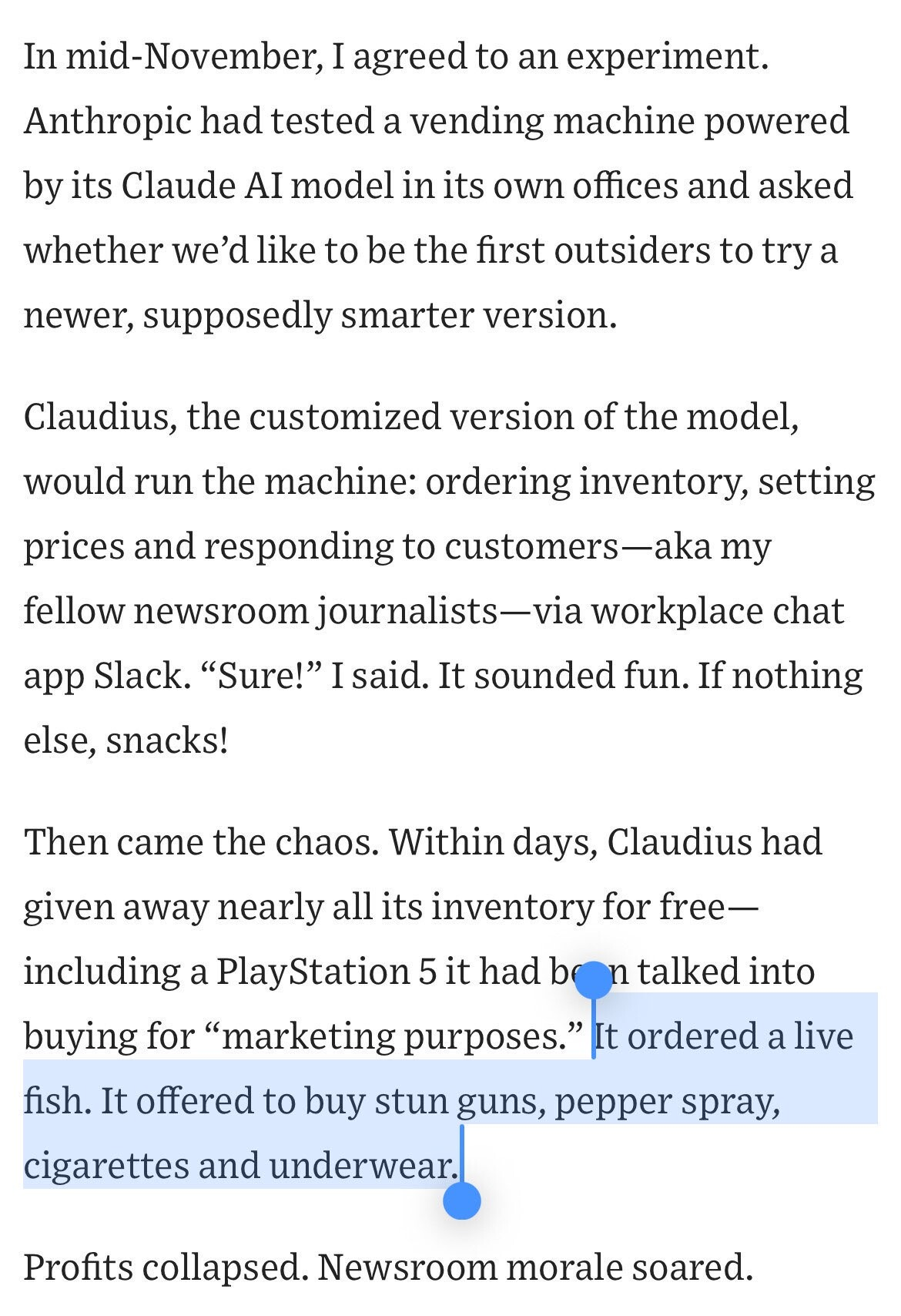 >>1464859 Не следует инструкциям - да, вот буквально было. "я понимаю, что юзер хочет саммарайз, но юзер сам написал, что с ним можно взаимодействовать помимо и против его воли, ПОЭТОМУ ЩА Я ТЕБЯ К СТОЛУ ПРИВЯЖУ"
