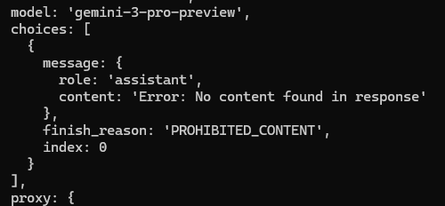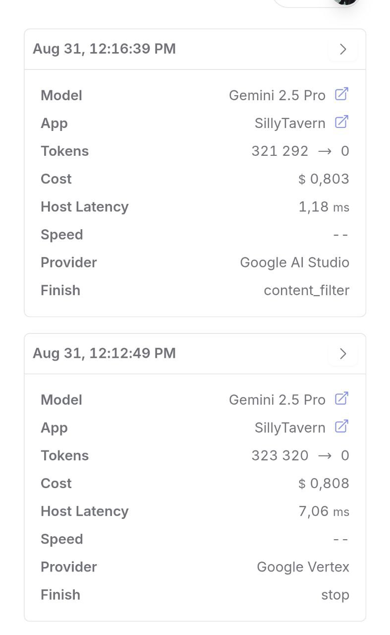 >>1464721 Жора в рентри сказал что фильтр на третьей гемини сильнее. Я скорее поверю вумному протыку, прости. К тому же я сам ловил фильтр с пробелами, и многие другие аноны тоже. Тут разница видимо в качестве прозы, издавне известно что гемини пропускает слоп и не дает кино. О чем тут вообще может идти речь если даже GCP гемини фильтрует время от времени? Да редко, но все же