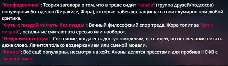 >>1464363 спунфид итоги, средний пользователь не способен отыскать в карточке тег про ббс нтр и затем удивляется почему на его вайфу по двадцать голых мафиа боссов напало
