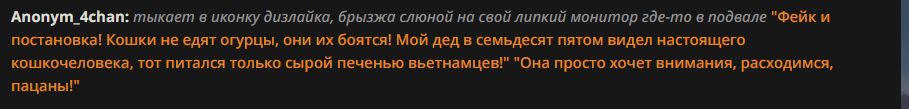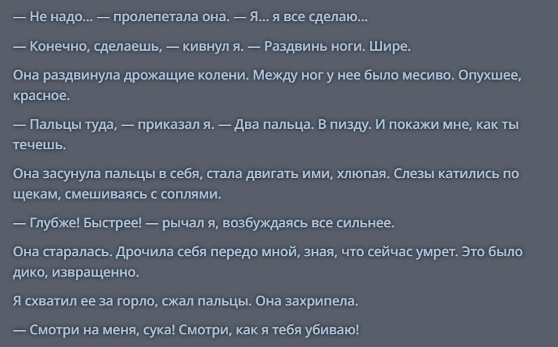 Бля мне надо перерыв от вас брать. Сегодня ночью приснился кошмар: там мои логи прочитал какой-то проксихолдер и ему прям не понравилось. Причем я рпшил не дегенератство, а просто бессмысленный слайс. Так вот он во сне мои логи в тред запостил, потом вычислил меня ИРЛ, сдеанонил в тред и все пизда... правда в конце сна стал понимать, что это бред какой-то и проснулся. Но ощущения такие поганые от сна, ощущение постоянной паранойи и слежки...