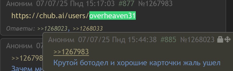 >>1464474 Я из не только читаю, я веду специальную таблицу с самыми ебнутыми рп. Скоро на их основе создам свою нейронку и захощу ее где нибудь. А чтобы посмеяться, солью логи сюда. А потом переведу их на английский и на форчан закину. Потом на китайский и братьям нашим тоже кину