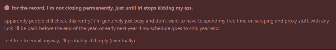 В общем,насчёт прокси сказать не могу. Ключи гемини конечно сейчас стали убиваться чаще из-за новой политики конторы пидарасов,но их всё равно дохуя. Клод это кал,ГПТ вообще не рассматриваю для РП. Поэтому на прокси скорее всего будет гемини+ключи опенроутера. Найти их с балансом тоже легко.