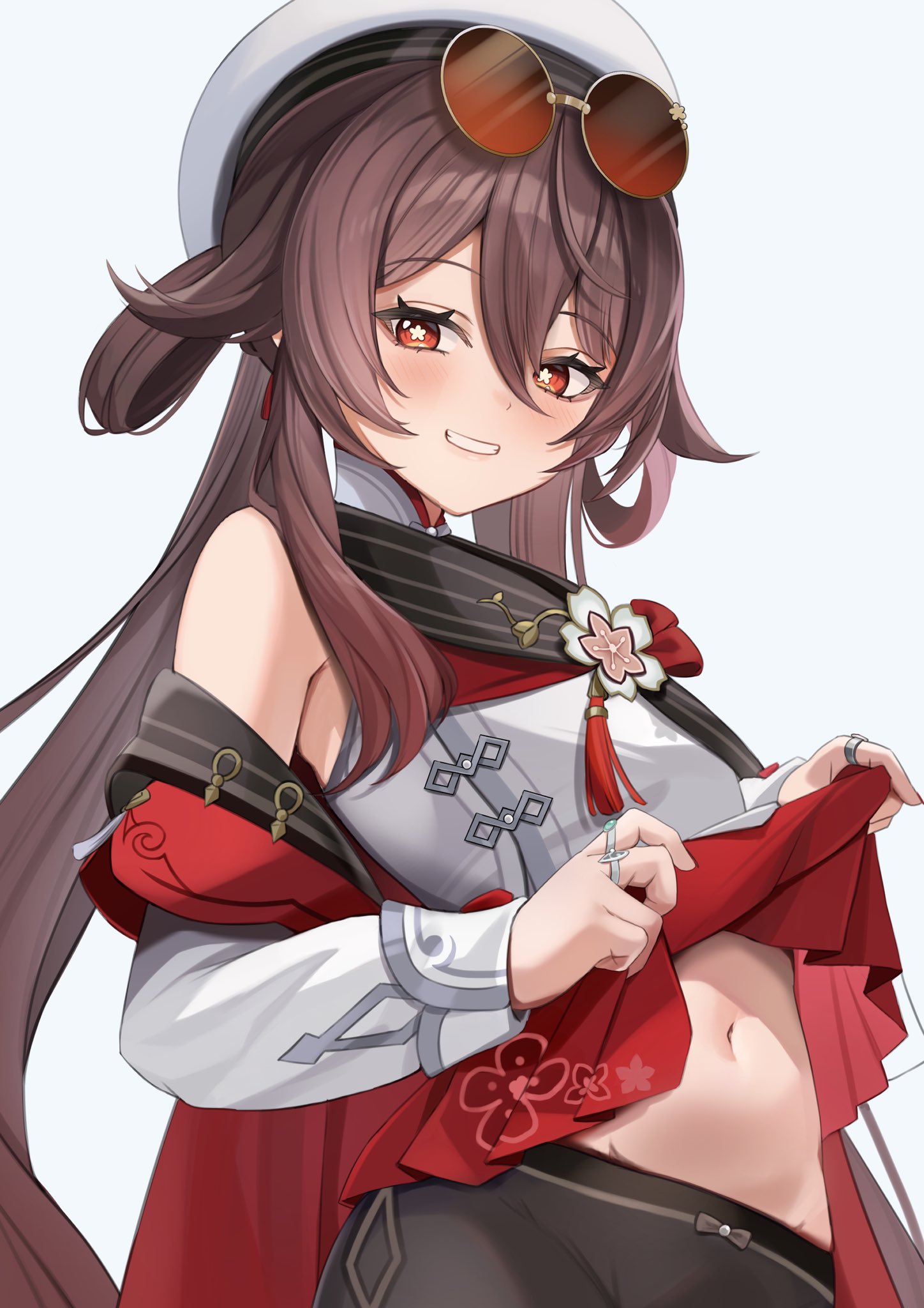<Внешкольный outfit> Вне академии одевается в открытую спортивную одежду, которая подчеркивает ее фигуру: топы, леггинсы, короткие юбки, бейсболки </Внешкольный outfit>