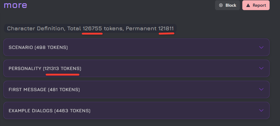 >>1470392 самая золотая середина на карточку (по моему опыту) это от 2 до 4к токенов по одном персонажу, если ситуация рассчитана на слоуберн то можно больше. на рпг боты по каким-то сеттингам 5-10к, если больше то всё больше дефов со временем проебывается