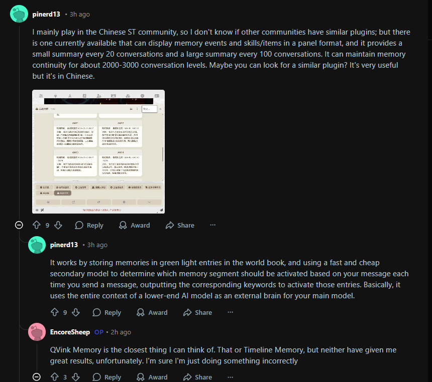 >>1470190 Не хочешь расширение с картой сделать? Сейчас в таверне это все очень ненаглядно, а так можно привязывать точки интереса и нпс к месту на карте и прямо из этого интерфейса создавать и редактировать лорбучные записи. Если разделить все на зоны и трекать локацию, то активируется только то что рядом или входит в ту же зону. Я думал повайбкодить, но кажется это выше моих сил...